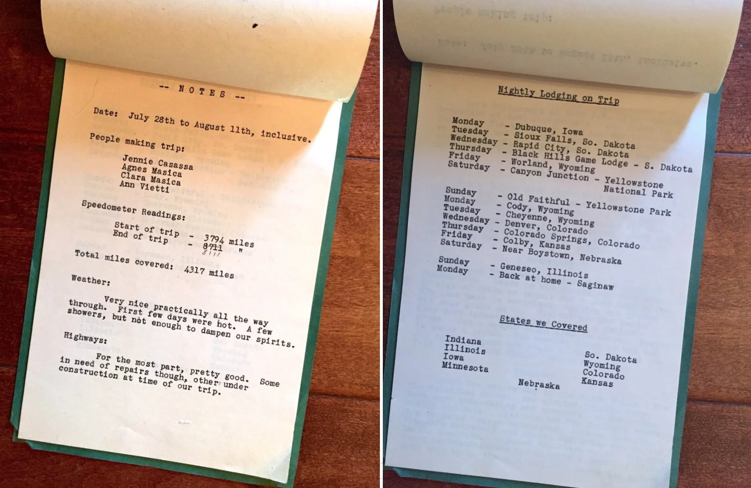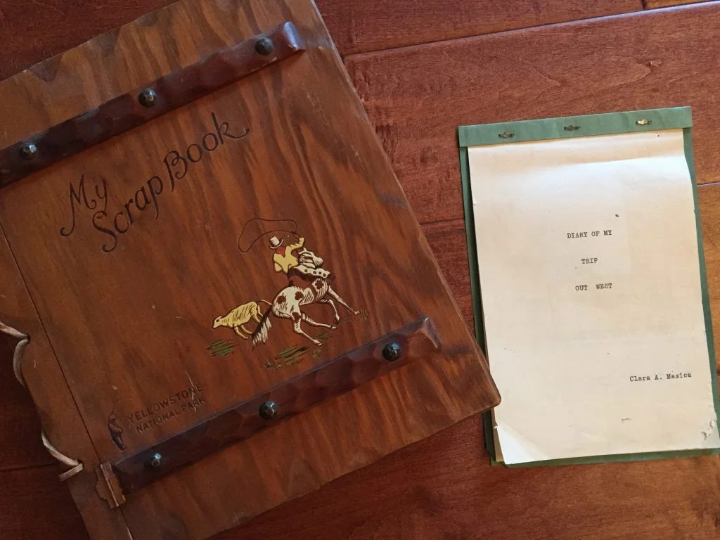 She recorded every day of her 2-week, 4,317-mile journey in a typewritten, “Diary of My Trip Out West,” and saved all her photos in a wooden souvenir scrapbook from Yellowstone National Park.